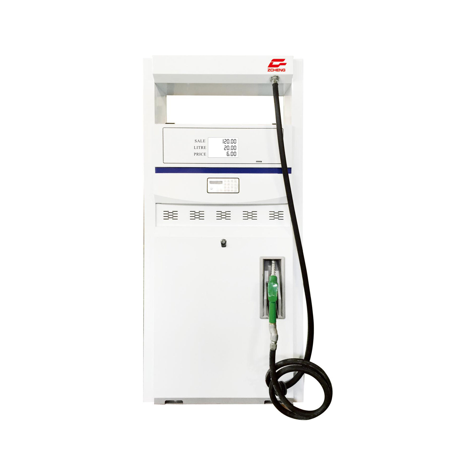 Standardly,fuel dispenser contains electrical controller,display board,keyboard,totalizer,pulser,solenoid valve,flow meter,pump,motor,hose,nozzle and nozzle holder.