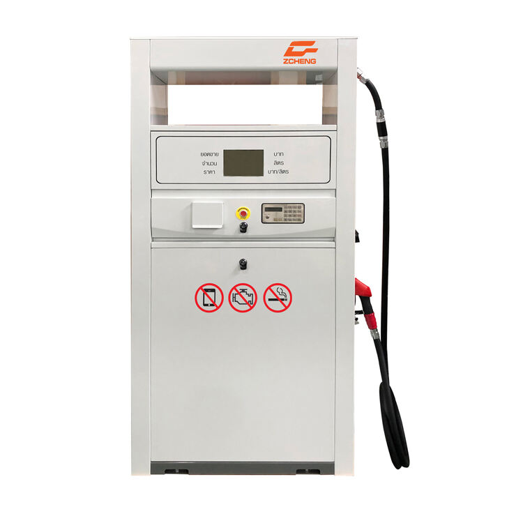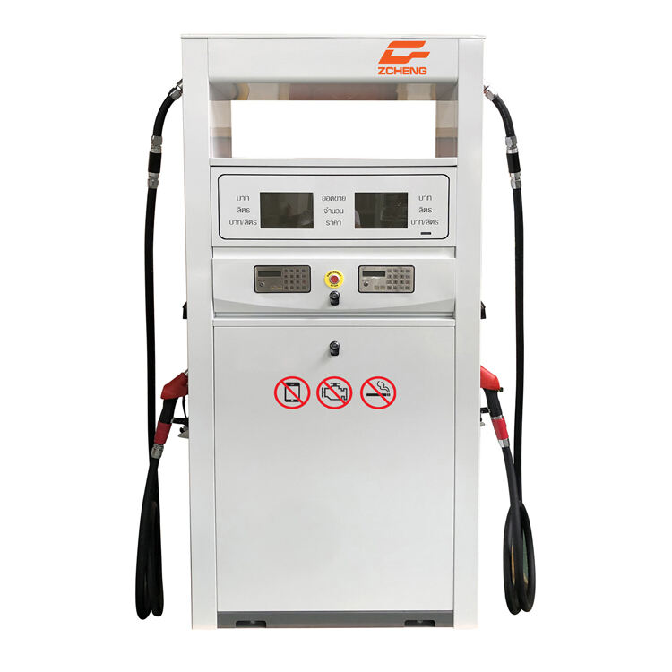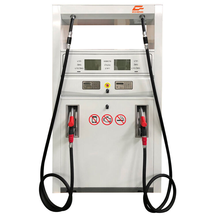 Estándarmente, el dispensador de combustible contiene controlador eléctrico, panel de visualización, teclado, totalizador, pulsador, válvula solenoide, medidor de flujo, bomba, motor, manguera, boquilla y portaboquilla.