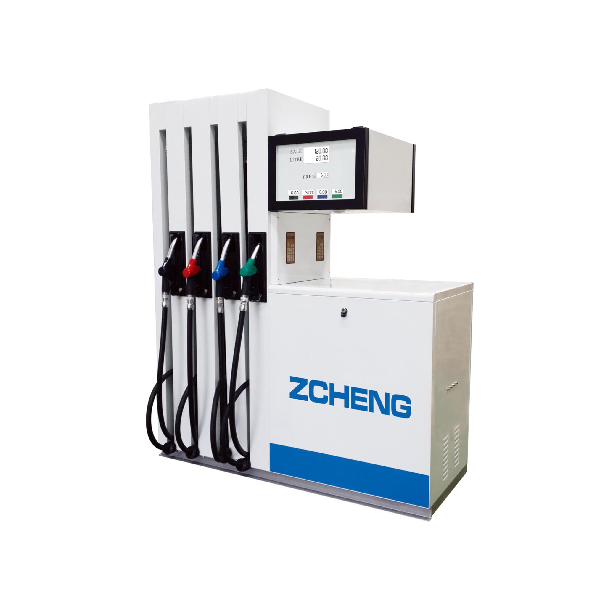 Standardly,fuel dispenser contains electrical controller,display board,keyboard,totalizer,pulser,solenoid valve,flow meter,pump,motor,hose,nozzle and nozzle holder.