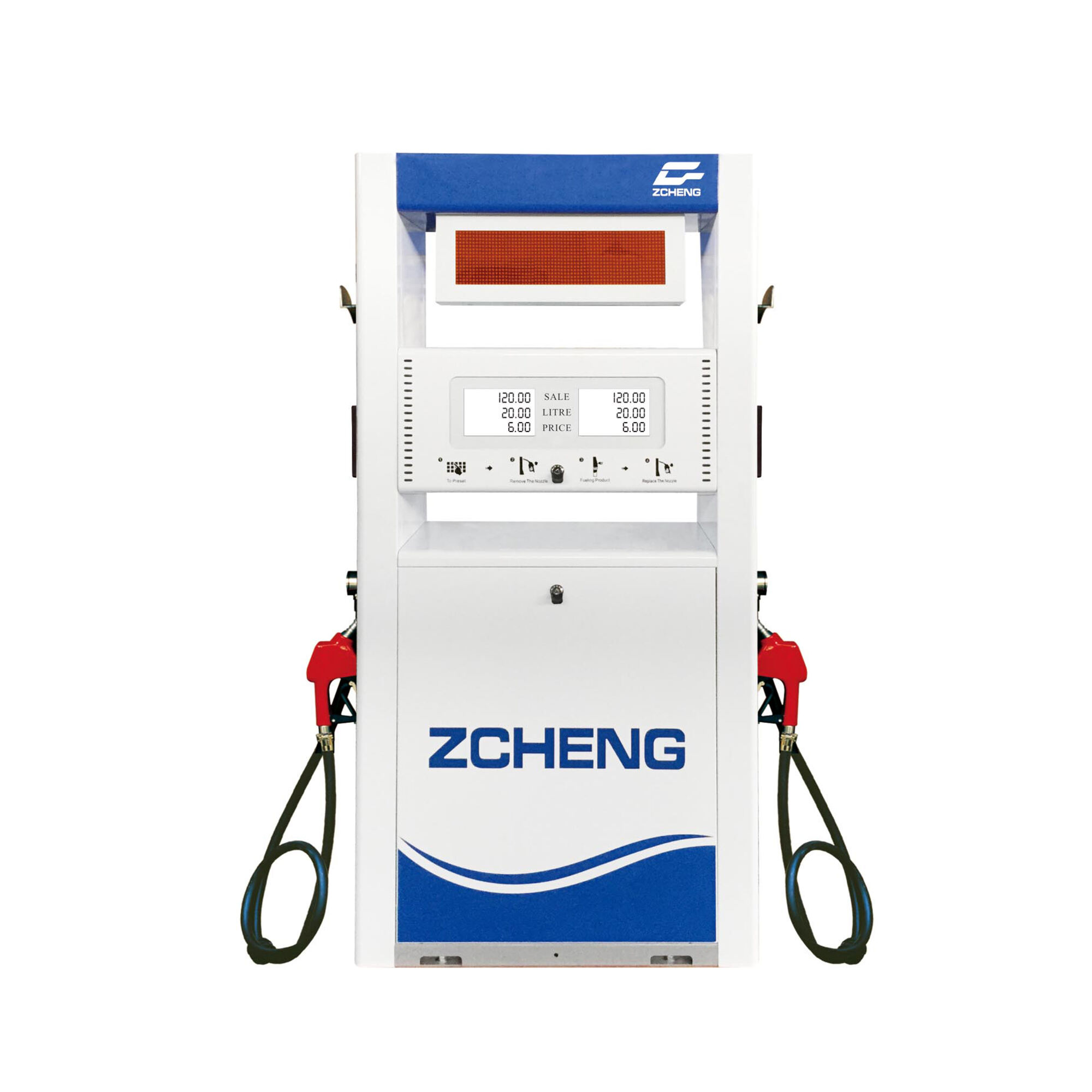 Standardly,fuel dispenser contains electrical controller,display board,keyboard,totalizer,pulser,solenoid valve,flow meter,pump,motor,hose,nozzle and nozzle holder.