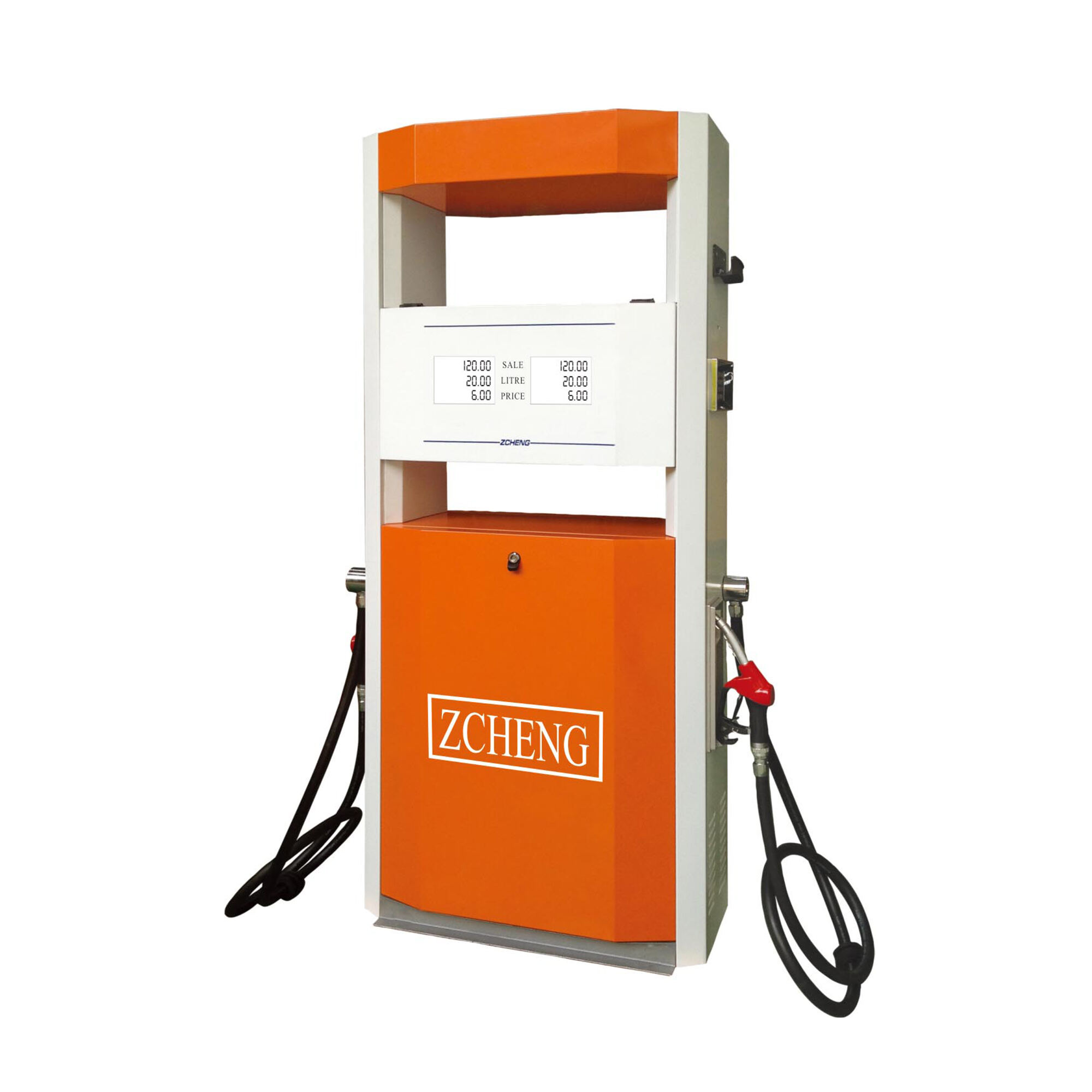 Standardly,fuel dispenser contains electrical controller,display board,keyboard,totalizer,pulser,solenoid valve,flow meter,pump,motor,hose,nozzle and nozzle holder.